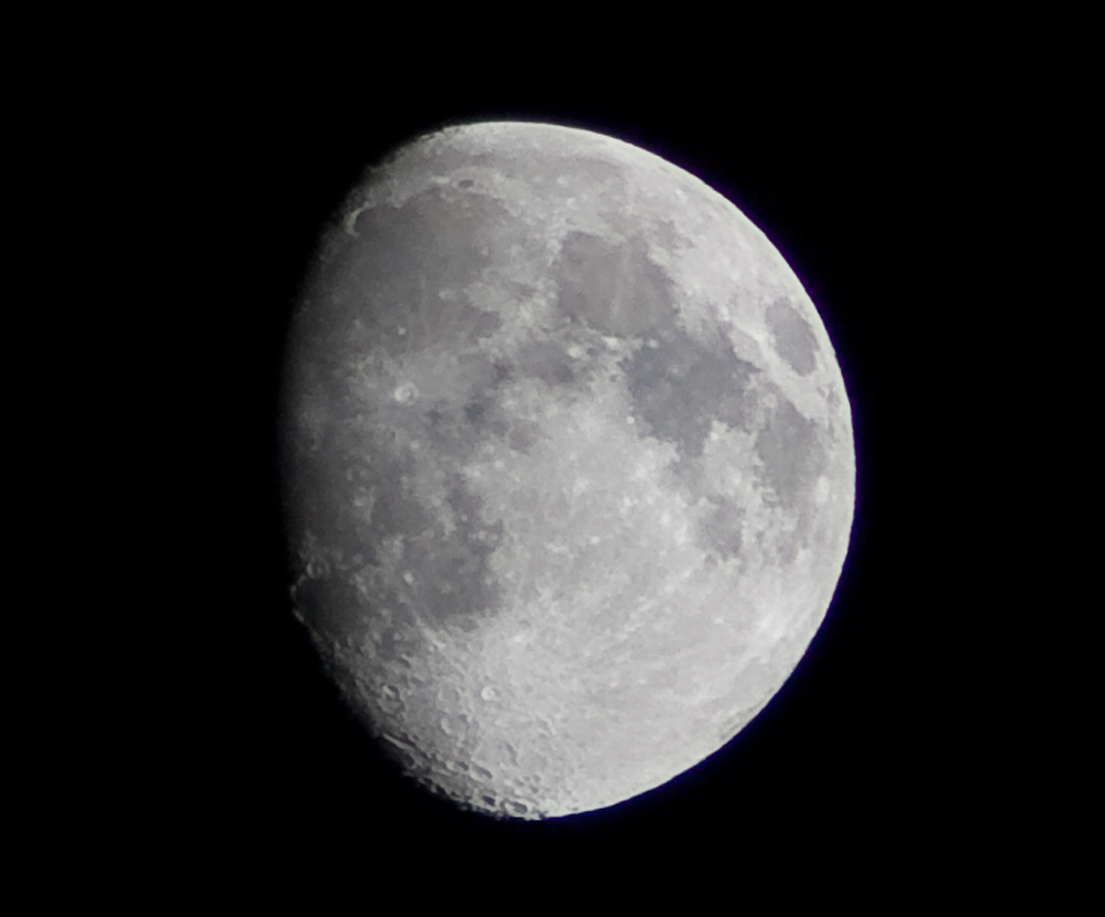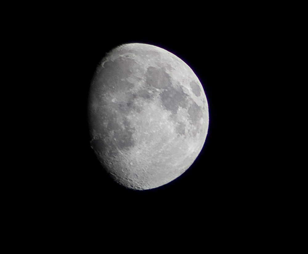 Some moon shots I took in late October 2009. The camera is tri-pod mounted and the zoom was set to 271 mm in both photos. The camera has an image conversion factor of 1.6, so that makes the zoom 434 mm. I have used Photoshop to zoom in to the photos and refine some of the detail.