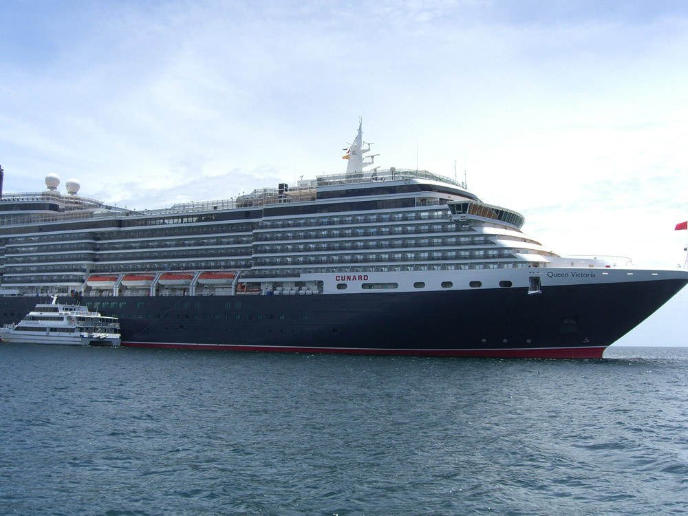 The Queen Victoria cruise liner, moored off Port Douglas. It was in Sydney last weekend with the Queen Elizebeth II, but I did not get to see them. QE II making it's final voyage, before becoming a floating hotel in Dubai. QV on an early cruise around the world. Very impressive.