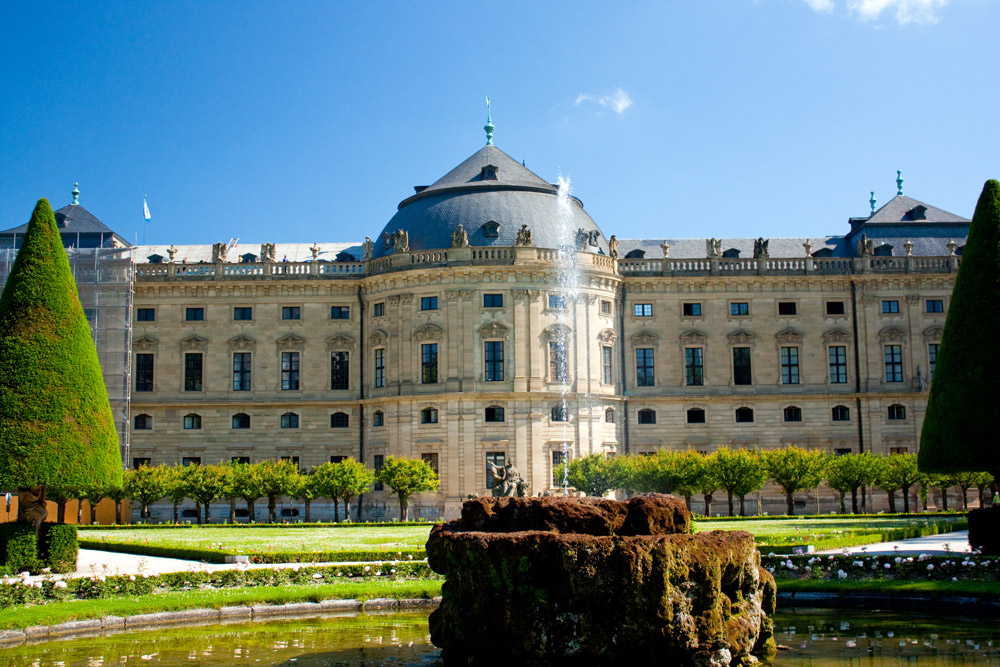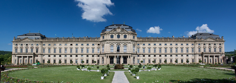 A panoramic view of the Wurzburg Residence palace, south side. This is three photos stitched together. They were taken hand held, so they do not quite match up and I have had to manipulate the stitching and it is far from perfect, so the perspective is a little distorted.