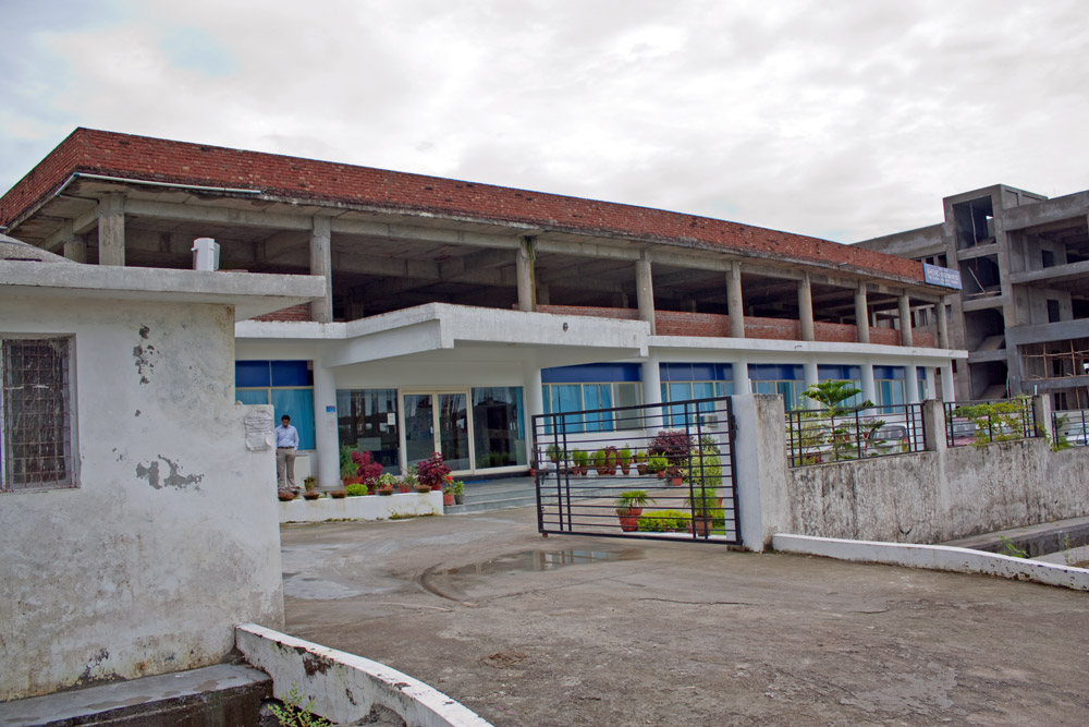 The government sponsored IT park in Dehradun. Nice new roads, but only half a dozen sites occupied and one site, still had a dwelling on it. The little red brick hut, just to the right of the storm drain.