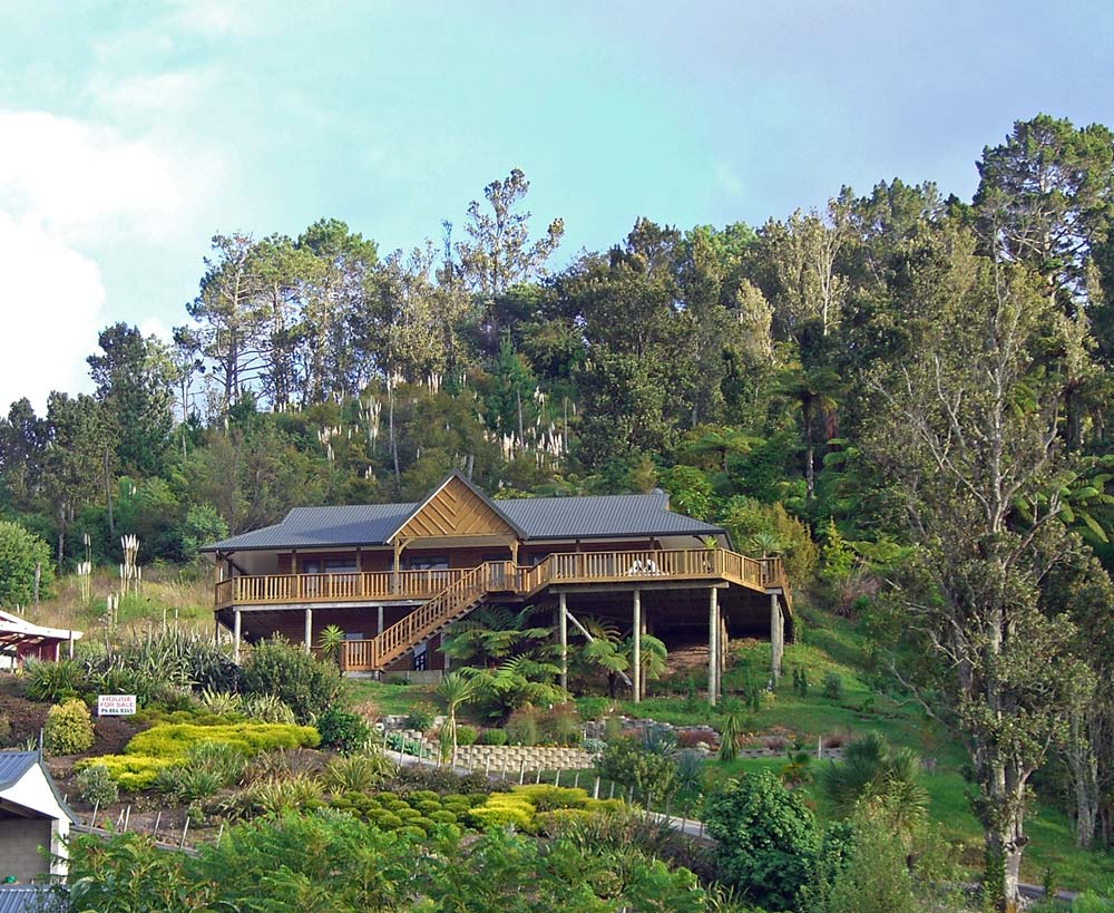 Another view, showing the lush grounds. The little huts in the fore ground are called "Bures" and are individual huts for guests. They even have a double hammock hanging out the front.
