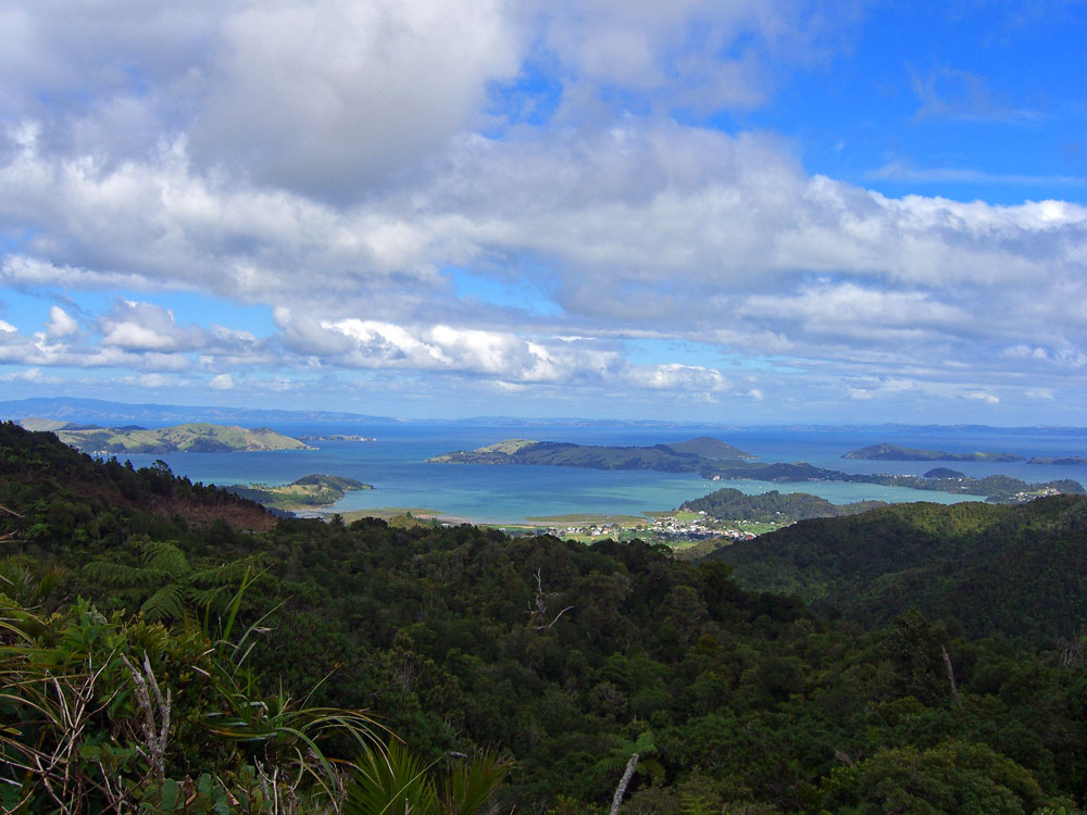 View from the top of a hill in the Bay of Islands. Sailed around the bay on the Catamaran in the foreground. Arrived in this bay, swam to shore and climbed this hill. Had a great days sailing.