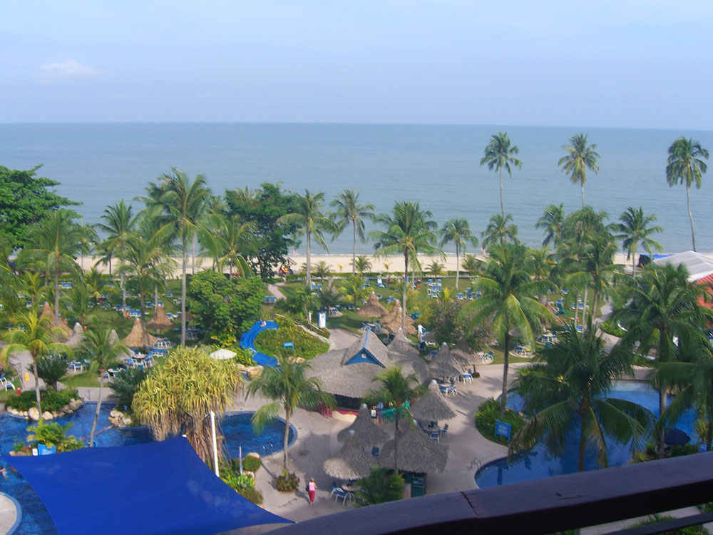 A view of the hotel and it's grounds. My room is in the block on the left, over near the sea front. There's actually a big swimming pool in there somewhere.