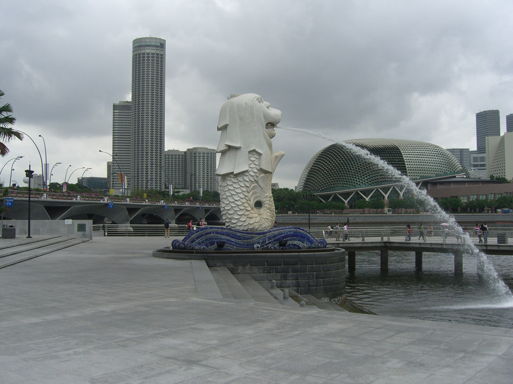 Merlion, the symbol of Singapore, with my hotel in the back ground, the left of the two smaller ones.