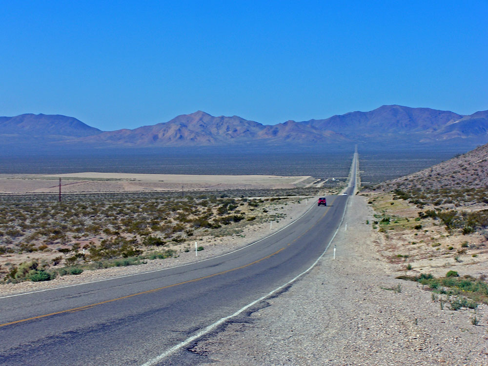 Having climbed out of Death Valley, this is the next valley. In the centre left, you can see where the road crosses the desert on the valley floor, before ascending the next mountain range. That's where I am going.