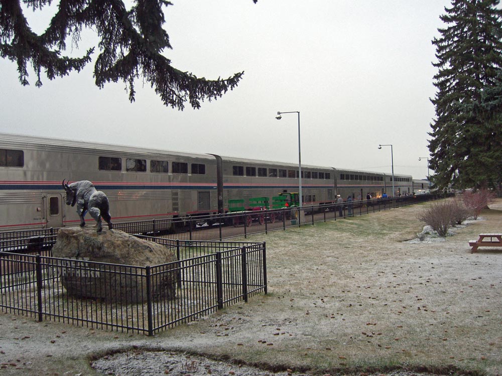 Had enough of driving for the time being, as I have driven over 9000 miles in the last 3 months, so I have caught the train. Boarded the EMPIRE BUILDER in Seattle yesterday afternoon (April 22nd) at 4:45 PM and arrive tomorrow (April 24th) at 3:55 PM, about 45 hours and 2 time zones. Meandered our way through the Washington mountains yesterday evening and crossed through a small part of Idaho during the night and currently in Montana, but soon it will be North Dakota. Through the night we will pass into Minnesota, then Wisconsin and finally Illinois tomorrow afternoon.