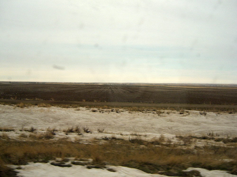 "I can see for miles and miles and miles and miles.........." and you can here. You can see for so far, you cannot see the horizon. This is one of the last pictures with snow in it. Snow has all gone now and it is just endless prairie.