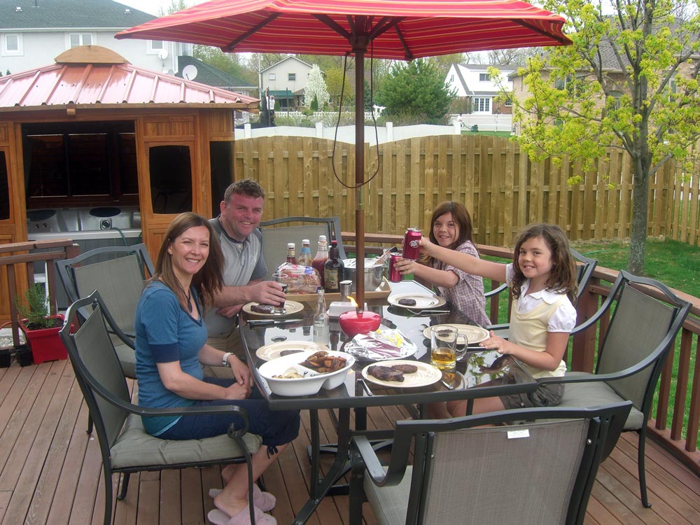 After all the snow I have seen recently, it was nice to have some good weather and we even managed a BBQ. Left to right, Becky, Wayne, Georgia and Holly.